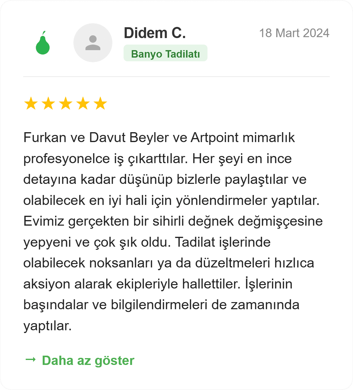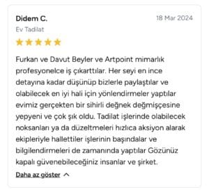 Artpoint Mimarlık olarak, iç mimarlık alanında bir adım öteye gidiyoruz. Her mekanın kendine özgü bir ruhu vardır, biz ise bu ruhu tasarımın yaratıcı dokunuşları ile buluşturuyoruz. Mekanların anlamını, fonksiyonunu ve estetiğini bir araya getirerek yaşam alanlarınızı ve iş mekanlarınızı en iyi haliyle şekillendiriyoruz.